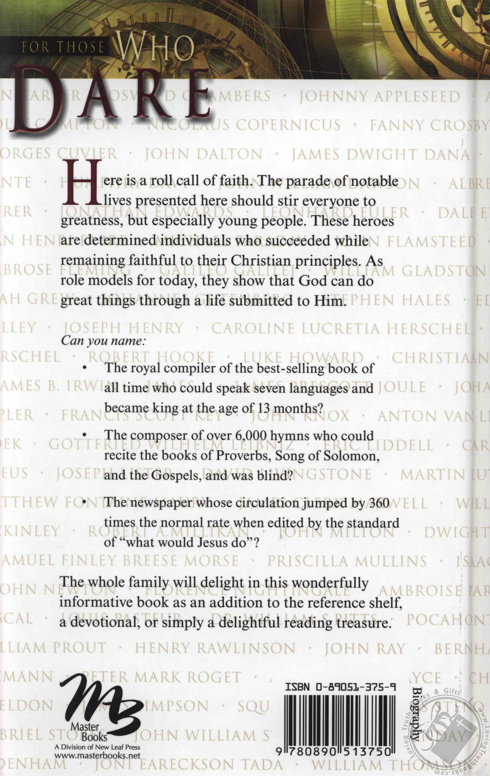 In this work by popular educational author John Tiner, brief biographies of the most successful, influential, and renowned Christians of all time are presented. Inventors, reformers, statesmen, authors, and others from all walks of life are brought here by a common bond: a life wholly dedicated to God. Discover facts that you didn’t know about names you know well. Meet new personalities and learn obscure behind-the-scenes stories about famous inventions and discoveries. This book is a tribute to what God can do with a life given to Him.
