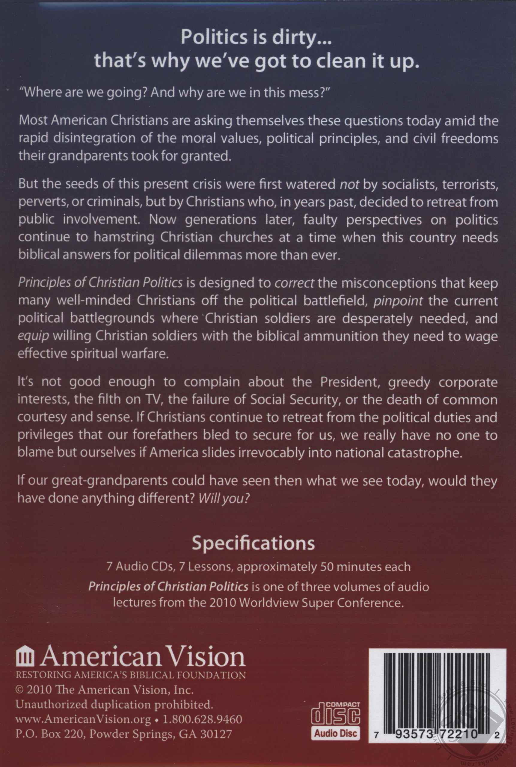 Principles of Christian Politics: A Seven-Lesson Audio Series Featuring Messages from the 2010 Worldview Super Conference (The American Vision Presents),Various