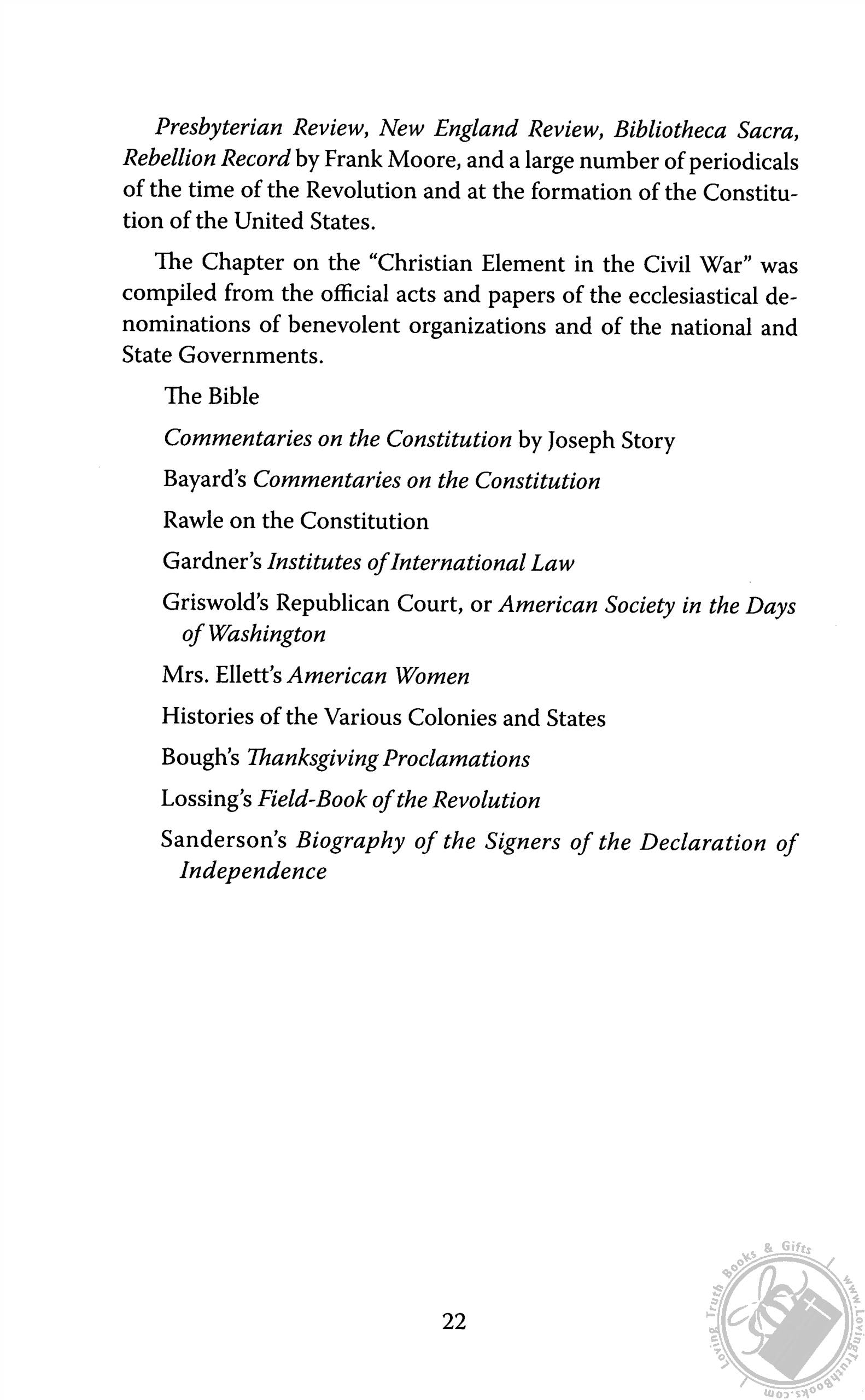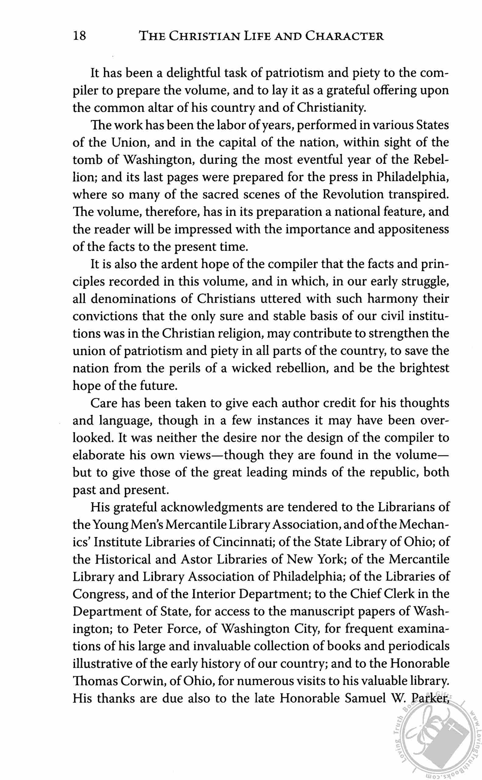 Christian Life and Character could very well be responsible for the rediscovering of the truth of America's foundation in Christianity. This book should be the cornerstone of any personal, professional, church or school library for as Chaplain Sunderland (1819-1901) of the 37th Congress stated: "It may become the morning star of the mightiest day of national regeneration the world has yet beheld!"