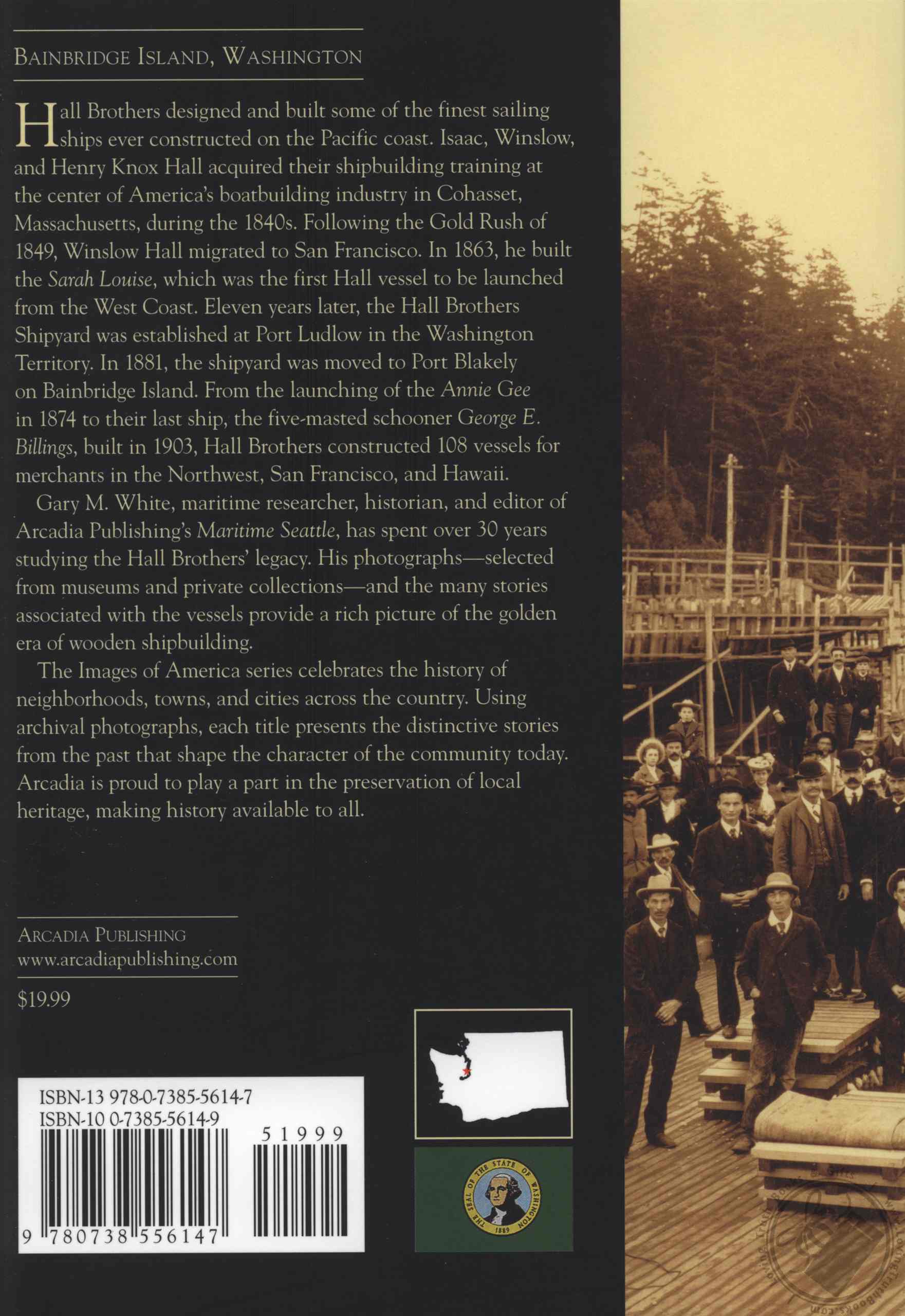 Gary M. White, maritime researcher, historian, and editor of Arcadia Publishing's Maritime Seattle, has spent over 30 years studying the Hall Brothers' legacy. His photographs selected from museums and private collections and the many stories associated with the vessels provide a rich picture of the golden era of wooden shipbuilding.