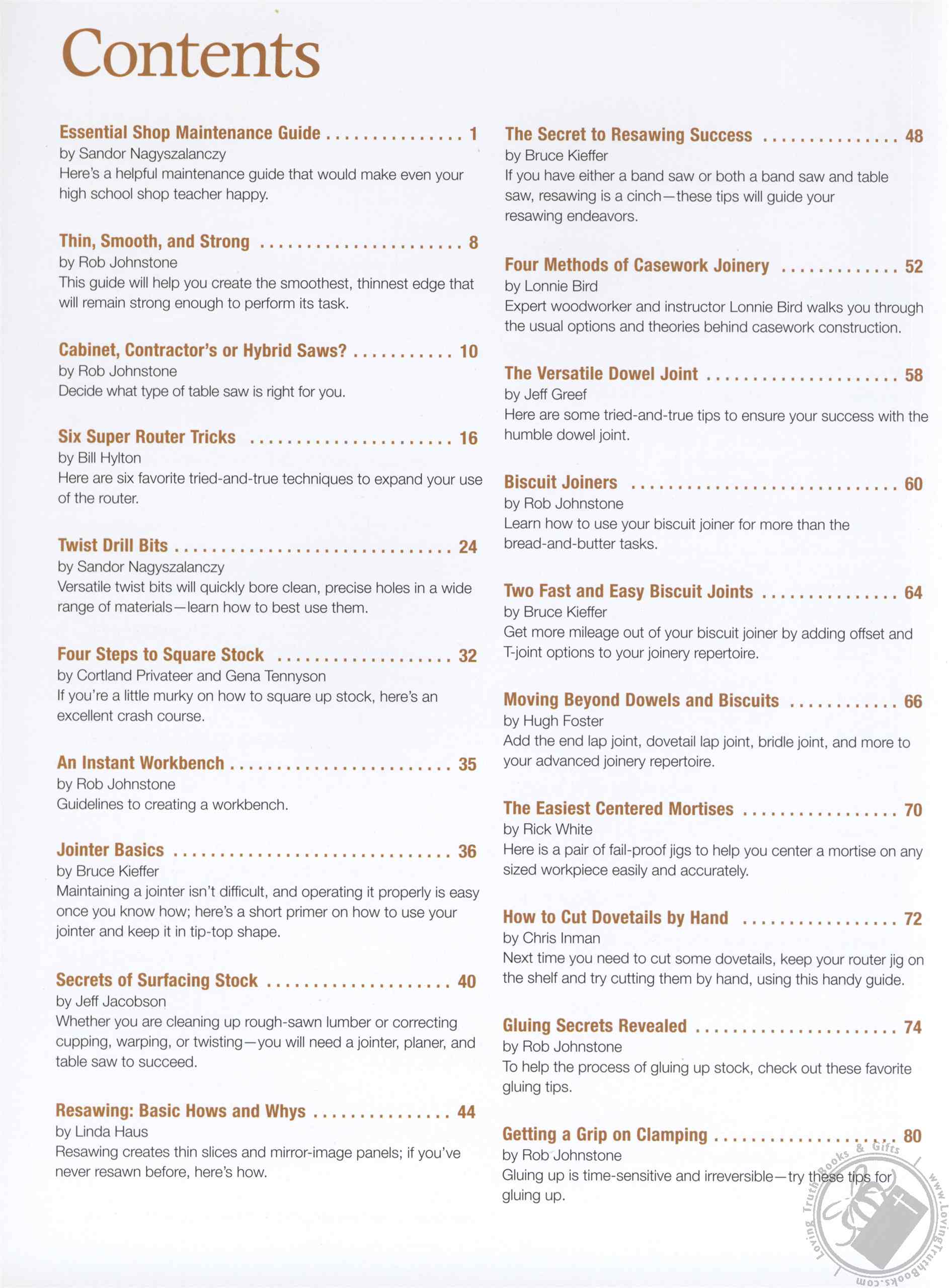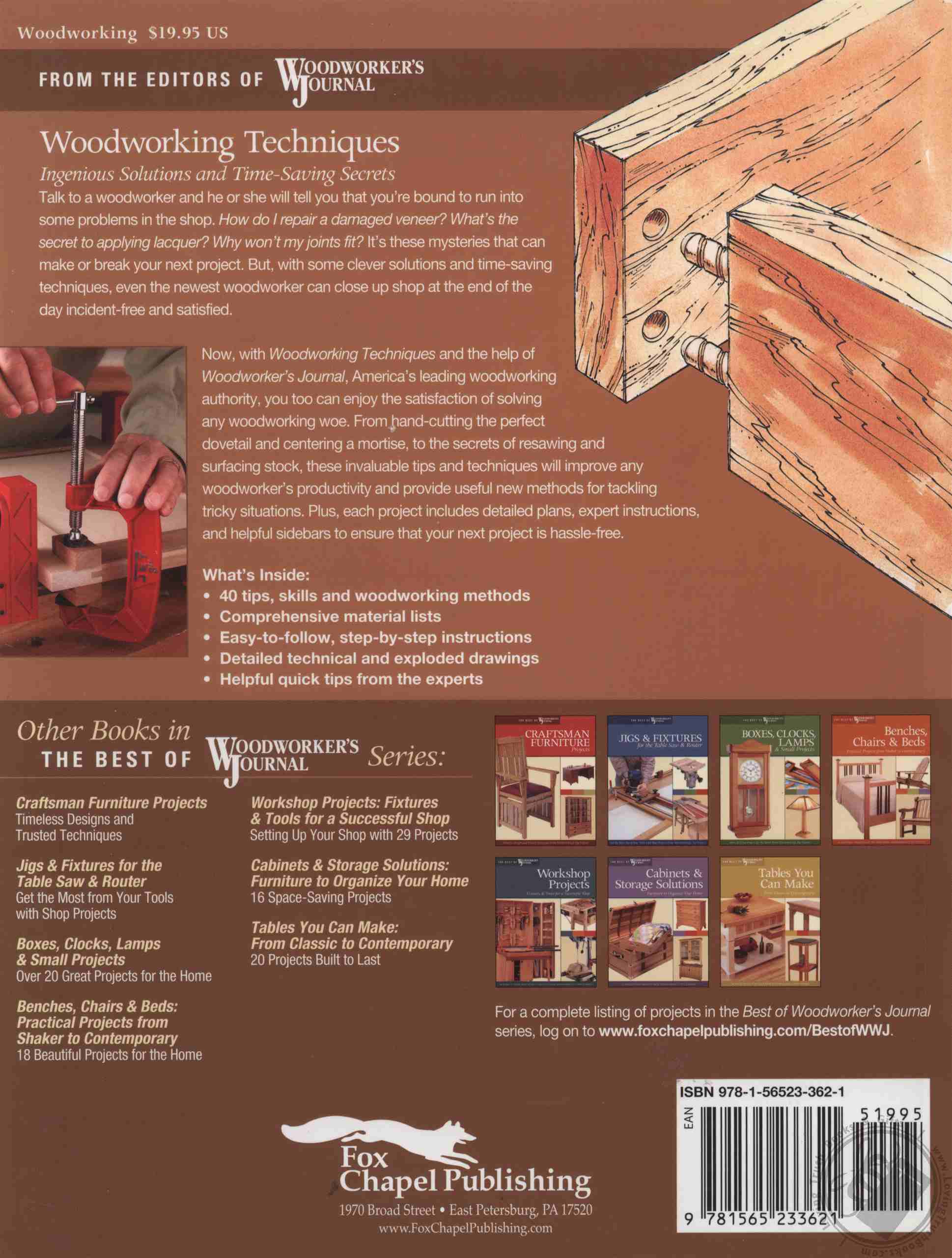 Offering 29 tried-and-true woodworking techniques from the professionals at Woodworker’s Journal, this detailed guide explores everything from the basics of squaring stock and sharpening tools to the intricacies of veneering a drawer face, making this a suitable collection for both beginning woodworkers looking to learn a new skill set and experienced workers who wish to improve their technique. In-depth instructions, step-by-step color photographs, and large-scale drawings effortlessly guide woodworkers through each project -- including handcutting dovetails, making Tambour doors, steam bending, and casework joinery. Helpful sidebars and quick tips also present invaluable advice on avoiding costly mistakes and improving productivity.