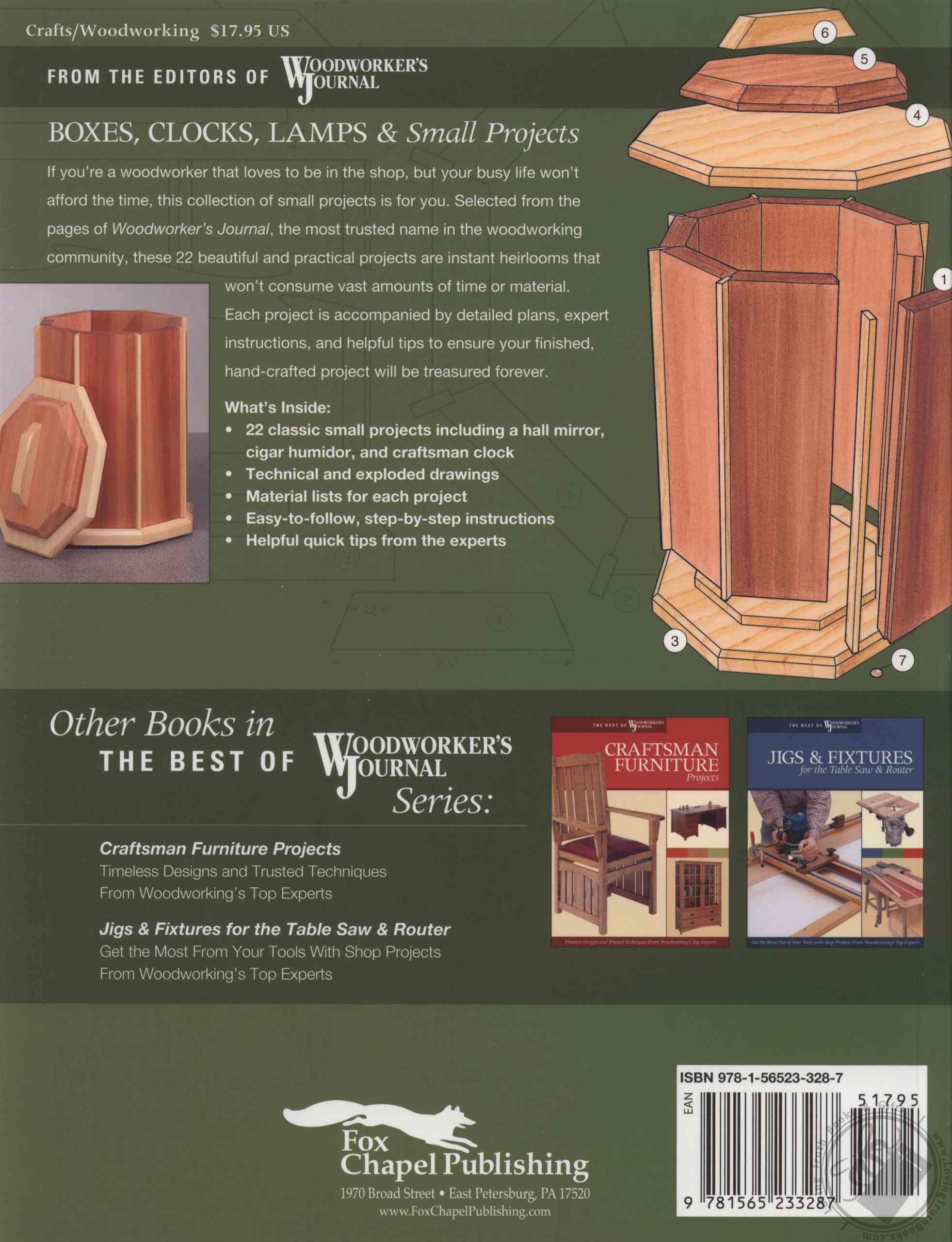 With attractive and functional projects to inspire any level of woodworker, this guide presents detailed plans with expert instruction for tasks that can be created from unused wood already on hand and in the smallest of woodshops. With hand-selected projects from the editors of Woodworkers Journal - including a walnut burl humidor, a bird’s-eye maple lamp, jewelry boxes, picture frames, and an Irish parlor clock - woodworkers will delight in finding traditional and classic tasks as well as more unique options. These small woodworking projects that are big on design, coupled with getting-started tips and techniques, allow craftsmen of any skill level to produce professional results in no time.