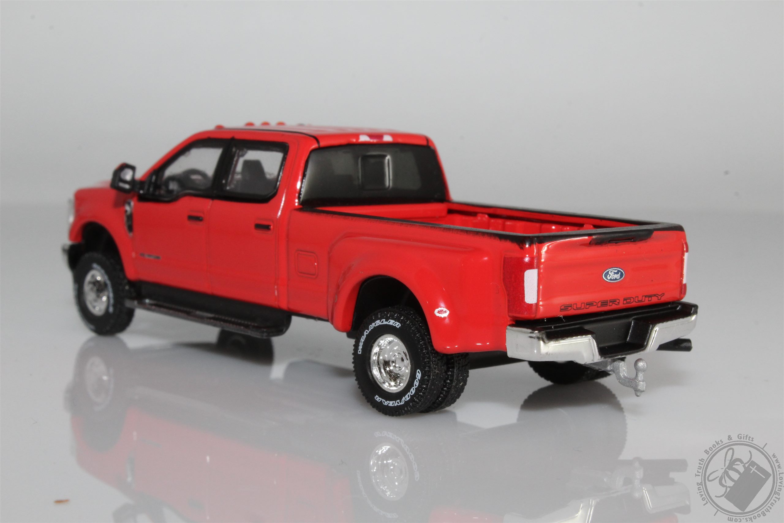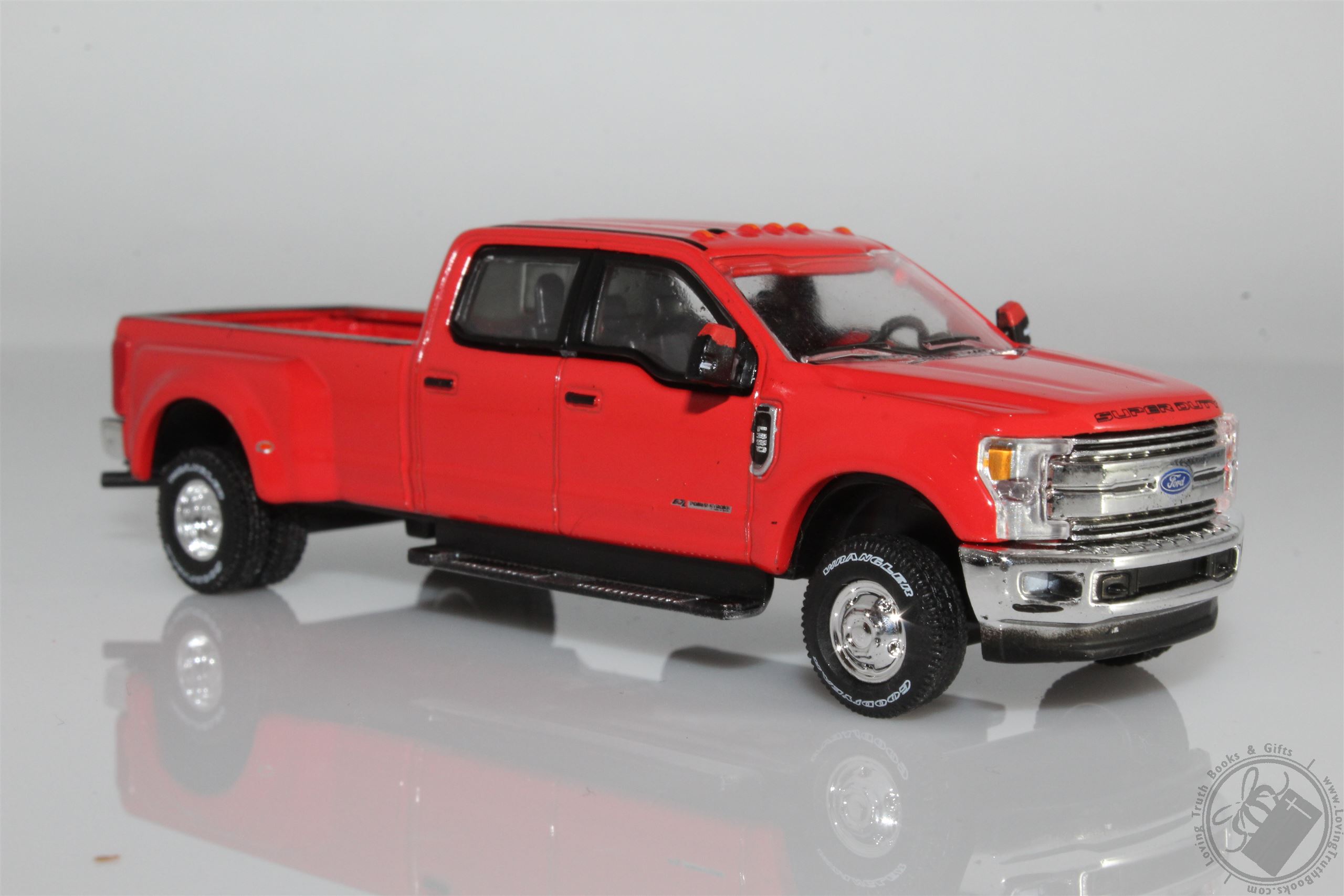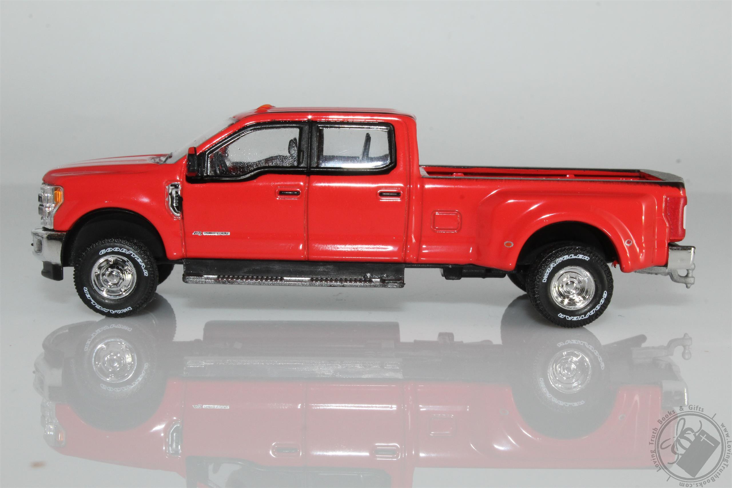 This 2019 Ford F-350 Dually Lariat Powerstroke Turbo Diesel is a 1/64 scale scale diecast model replica. It features rubber tires, comes in a blister pack, detailed exterior, metal body and chassis. It's an excellent addition for any truck collection.