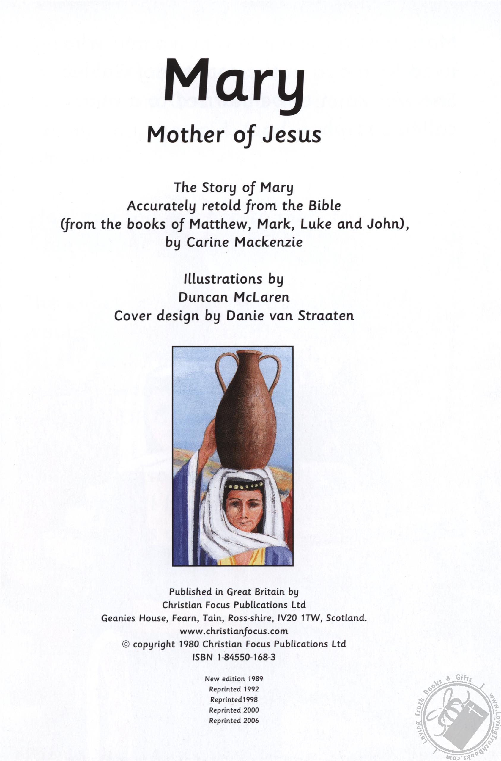 The Story of Mary accurately retold from the Bible (the books of Matthew, Mark, Luke & John). Illustrated by Duncan Maclaren.