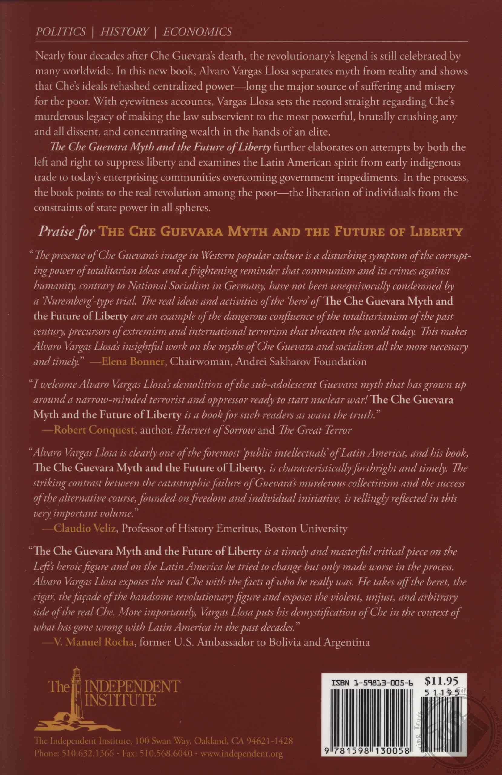 Besides exposing the dark truths of Che's ideology and actions, The Che Guevara Myth and the Future of Liberty elaborates on attempts by both the left and right to suppress liberty and examines the manifestation of Latin American spirit throughout the ages, from early indigenous trade to today's enterprising communities overcoming government impediments. In so doing, the book points to the real revolution among the poor—the liberation of individuals from the constraints of state power in all spheres, public and private.