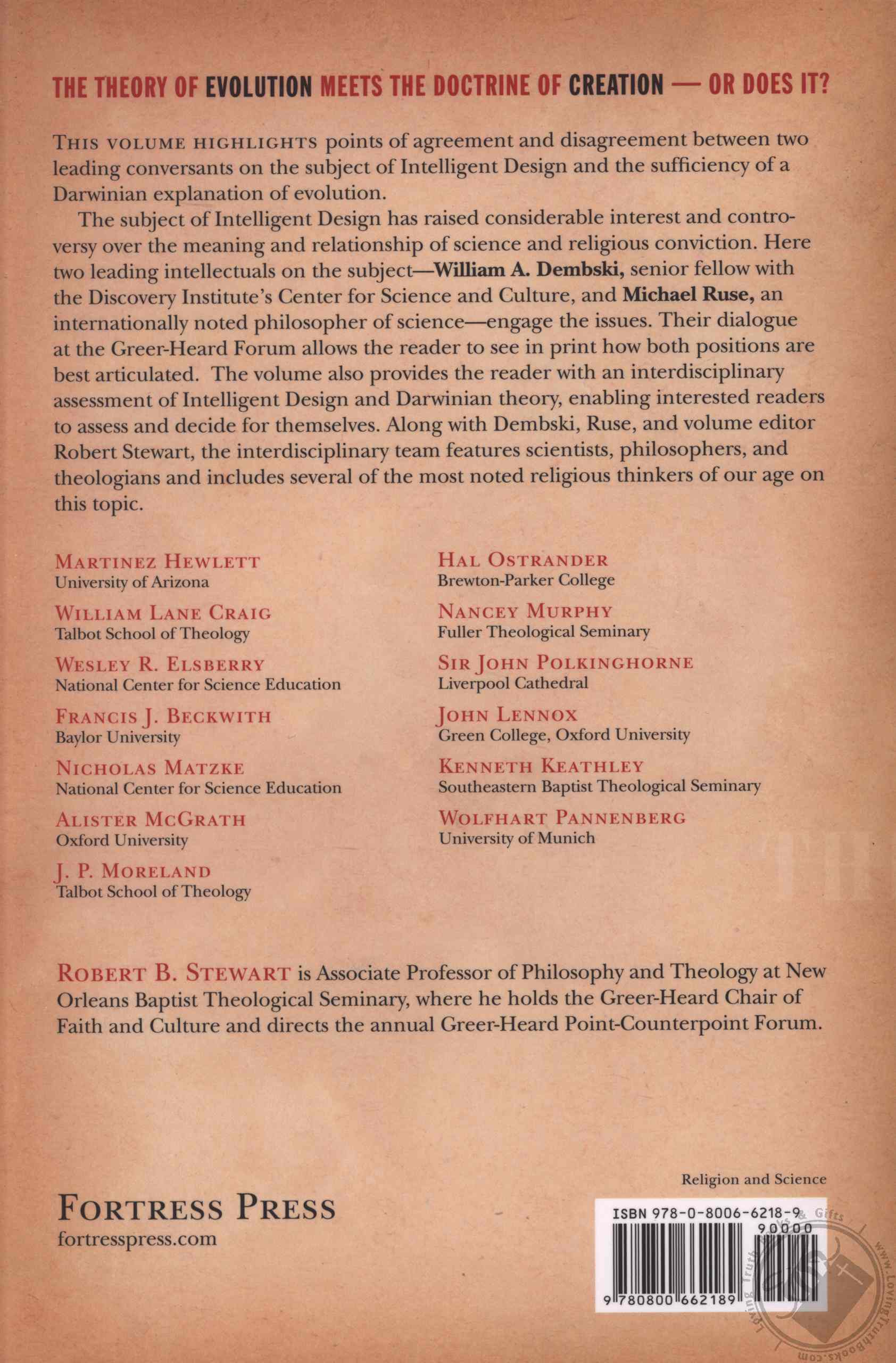 The subject of intelligent design has been much in the news in recent months but is often treated in a piecemeal fashion or one-sidedly. This volume highlights points of agreement and disagreement between two leading intellectuals on the subject: William A. Dembski, senior fellow with Discovery Institute's Center for Science and Culture, and Michael Ruse, an internationally known philosopher of science. Each of the contributors presents his or her position in light of the other's, providing readers with a fair and balanced case for both sides and allowing readers to decide for themselves. The following noted scientists, philosophers and theologians then explore the many facets of this debate.