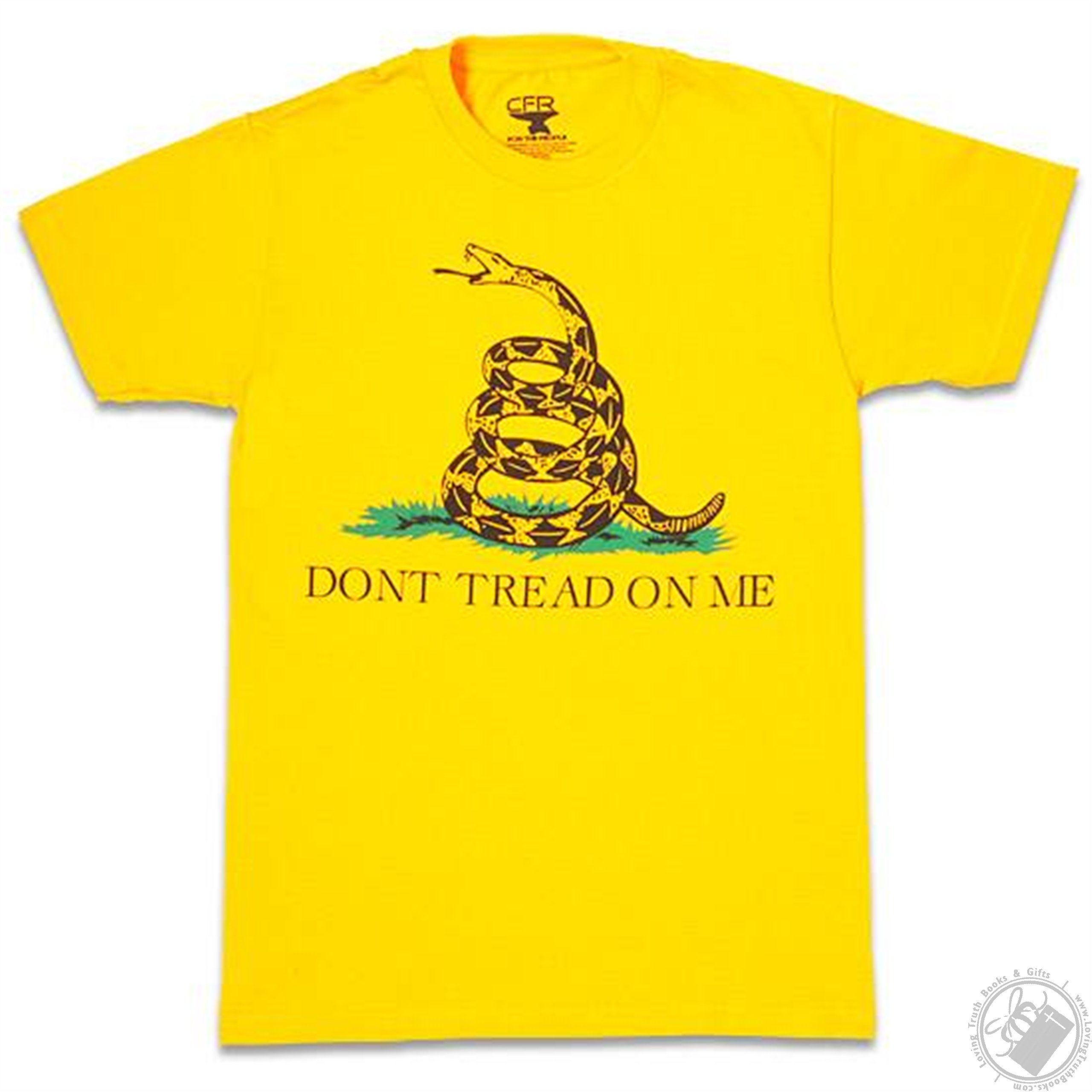 Emblazoned with the motto "Don't Tread On Me" the historic Gadsden flag's meaning is clear. The flag was designed by and is named after American general and statesman Christopher Gadsden. It was also used by the United States Marine Corps as an early motto flag. Show your patriotism when you wear this bold T-Shirt.